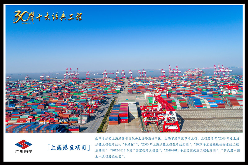 廣州南華參建的上海港區項目包含上海外高橋港區、上海羅涇港區多項工程,工程獲獎有“2000年度上海建設工程優質結構‘申港杯’”、“2000年上海建設工程優質結構獎”,“2009年度交通運輸部水運工程質量獎”、“2012-2013年度“國家優質工程獎”。“2010-2011年度國家優質工程金質獎”、“第九屆中國土木工程詹天佑獎”。