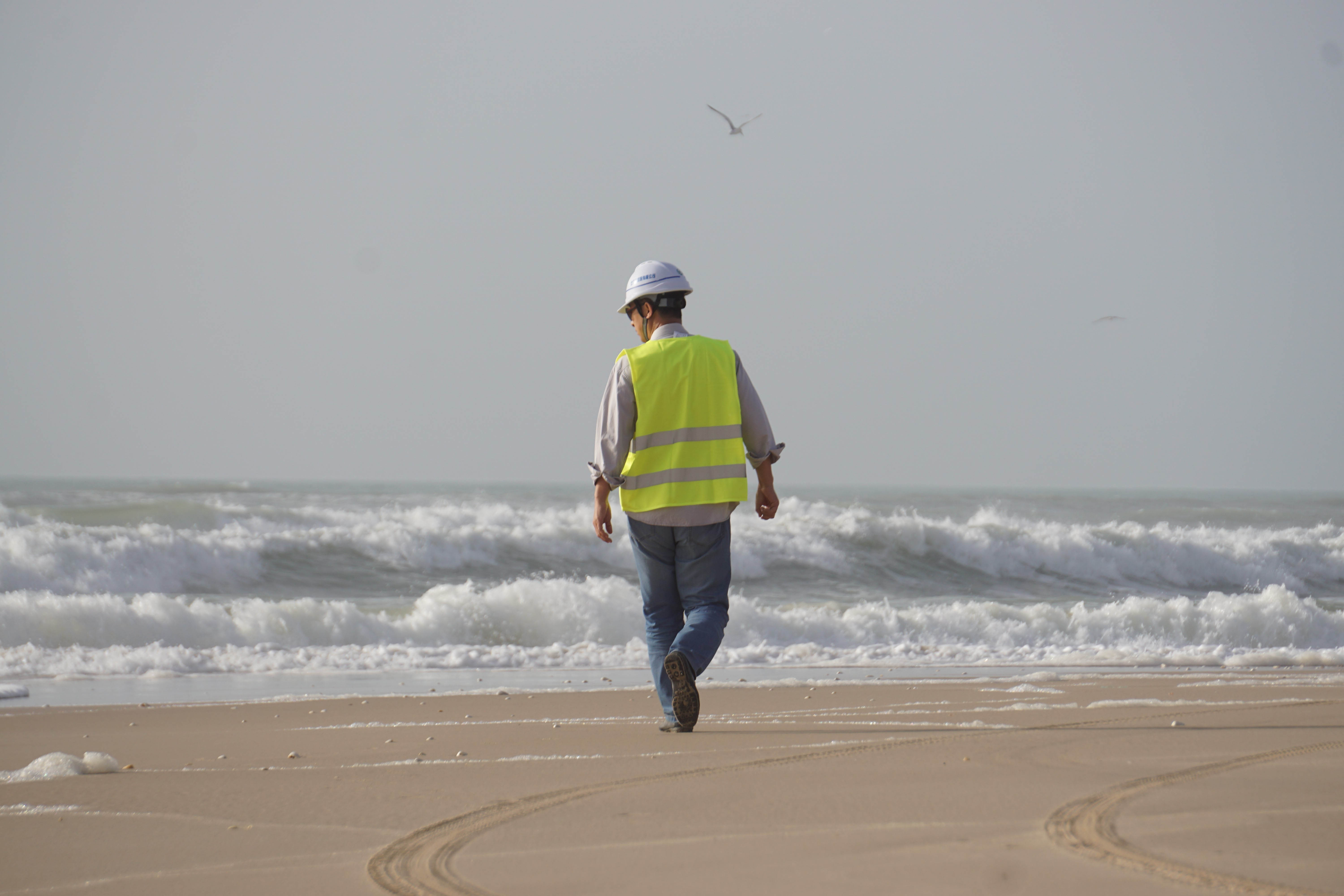 攻堅(jiān)克難,提前完成節(jié)點(diǎn)工期。由于現(xiàn)場(chǎng)各施工點(diǎn)較為分散,監(jiān)理部前期沒(méi)有工程用車(chē),每天只能徒步檢查工地。在柔軟的細(xì)沙上面走路跟硬地上走路不同,它沒(méi)有后著力,吃勁程度加倍。監(jiān)理人員每天的步數(shù)在2萬(wàn)左右,同事們每天比比步數(shù),倒也覺(jué)得走路是一件很有意思的事情。炎熱的氣溫、充沛的陽(yáng)光,加上海風(fēng)的吹佛,長(zhǎng)期戴著安全帽工作的監(jiān)理人員皮膚黝黑泛紅,兩頰各有一道從鬢角到下巴的白印記,這是安全帽帶子留下的印記。正在這一張張帶有黑白安全帶印記臉的參建人員的共同努力下,項(xiàng)目步入了正軌,防波堤工程于12月大浪期前順利完成了主體貫通,其他單位工程也已多點(diǎn)開(kāi)花,穩(wěn)步推進(jìn)。業(yè)主對(duì)項(xiàng)目管理團(tuán)隊(duì)取得的成績(jī)給予了高度的肯定。