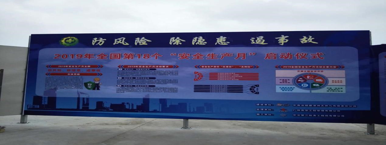 發(fā)布時(shí)間:2019-06-03 15:51:28今年6月份為全國第十八個(gè)安全生產(chǎn)月,本次安全生產(chǎn)月主題為“防風(fēng)險(xiǎn)、除隱患、遏事故”。福建漳州液化天然氣(LNG)項(xiàng)目是福建中海油的重點(diǎn)項(xiàng)目,安全生產(chǎn)壓力加大。為筑牢安全發(fā)展理念,增強(qiáng)安全責(zé)任意識(shí),做好現(xiàn)場安全工作。2019年6月3日,中海油福建漳州天然氣有限責(zé)任公司、廣州南華工程管理有限公司、中交第三航務(wù)工程局有限公司三方聯(lián)合于項(xiàng)目工地組織開展“安全生產(chǎn)月”活動(dòng)。