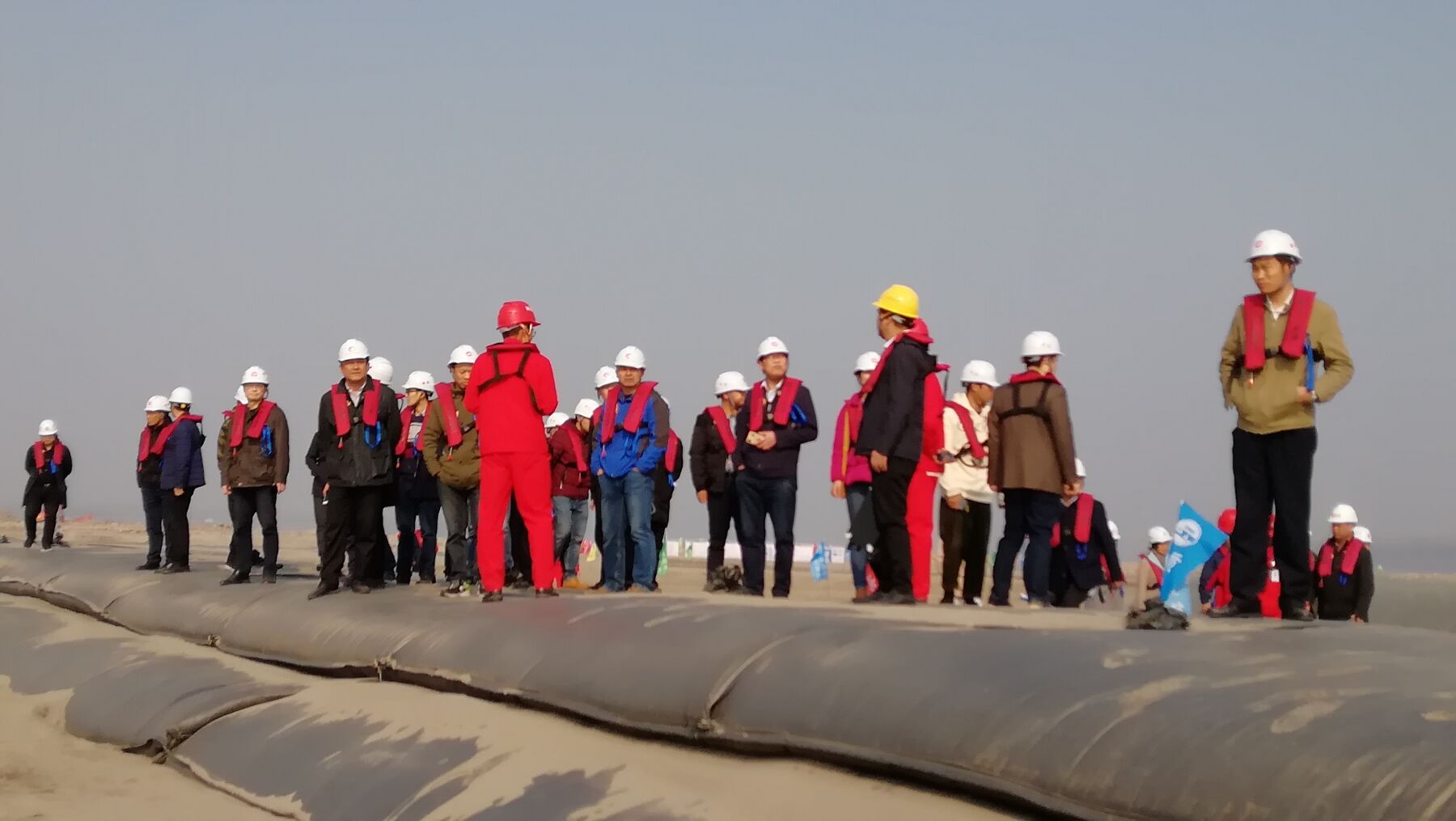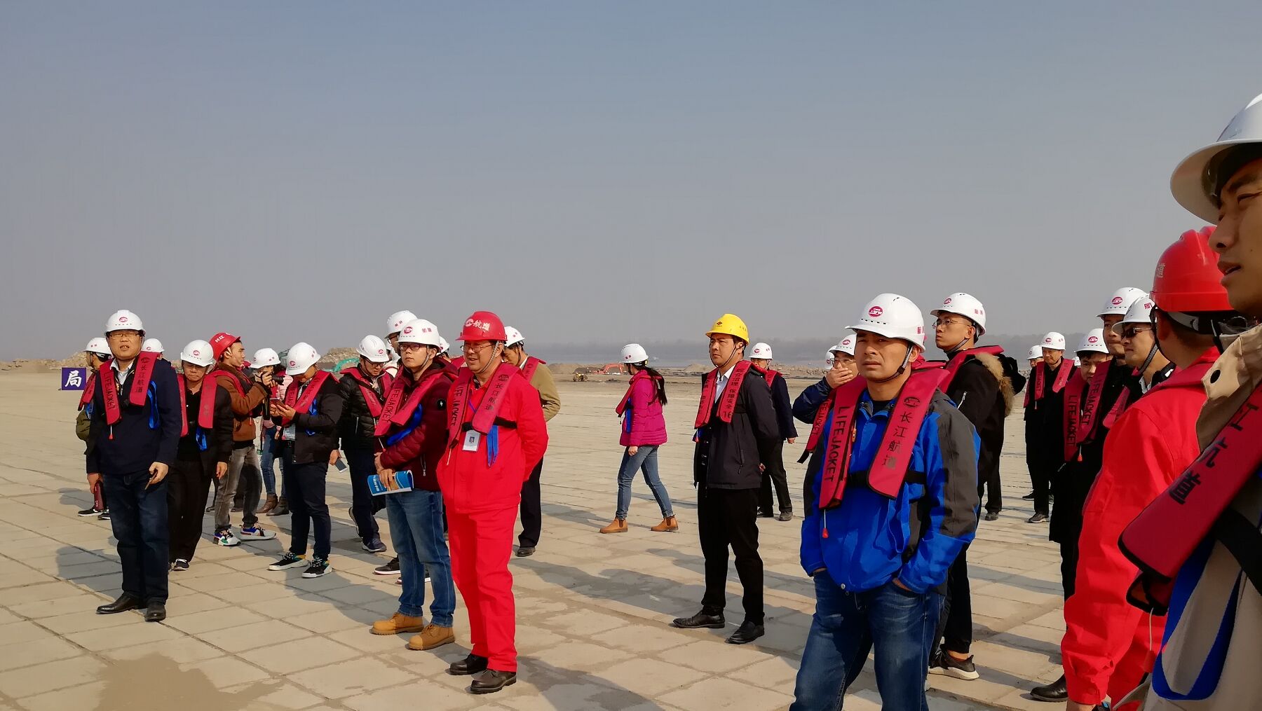 專家組一行首先在項目部參觀了智慧工地,聽取了智慧工地在工程實際建設中運用的成果匯報,隨后前往黃州心灘進行施工現場觀摩交流。黃州心灘生態固灘工程是長江航道整治工程中首次采用疏浚土吹填造地,并通過各種生態結構穩固現有洲灘,工程完工后將打造一座生態綠洲,為長江新增一片綠色。專家組一行紛紛表示該工程展示了航道整治工程特有的魅力特點,是貫徹落實習近平總書記“共抓大保護、不搞大開發”的指示精神,是對長江經濟帶高質量發展要求的具體表現。此次觀摩,專家與現場人員充分溝通交流,反映行業發展新問題新訴求,了解了新技術、新工藝、新材料的推廣應用,達到了相互學習、取長補短、提升技術水平的目的。