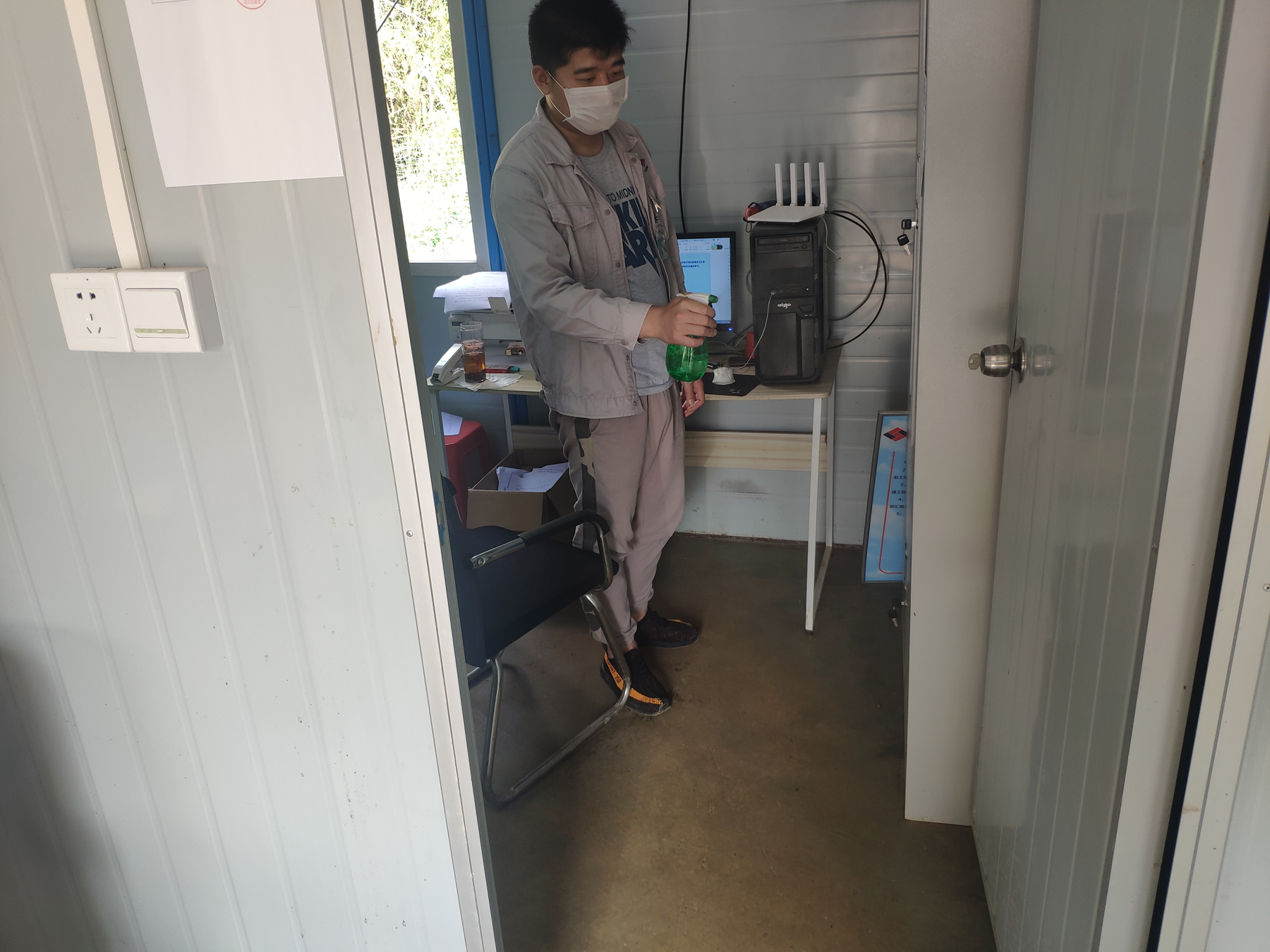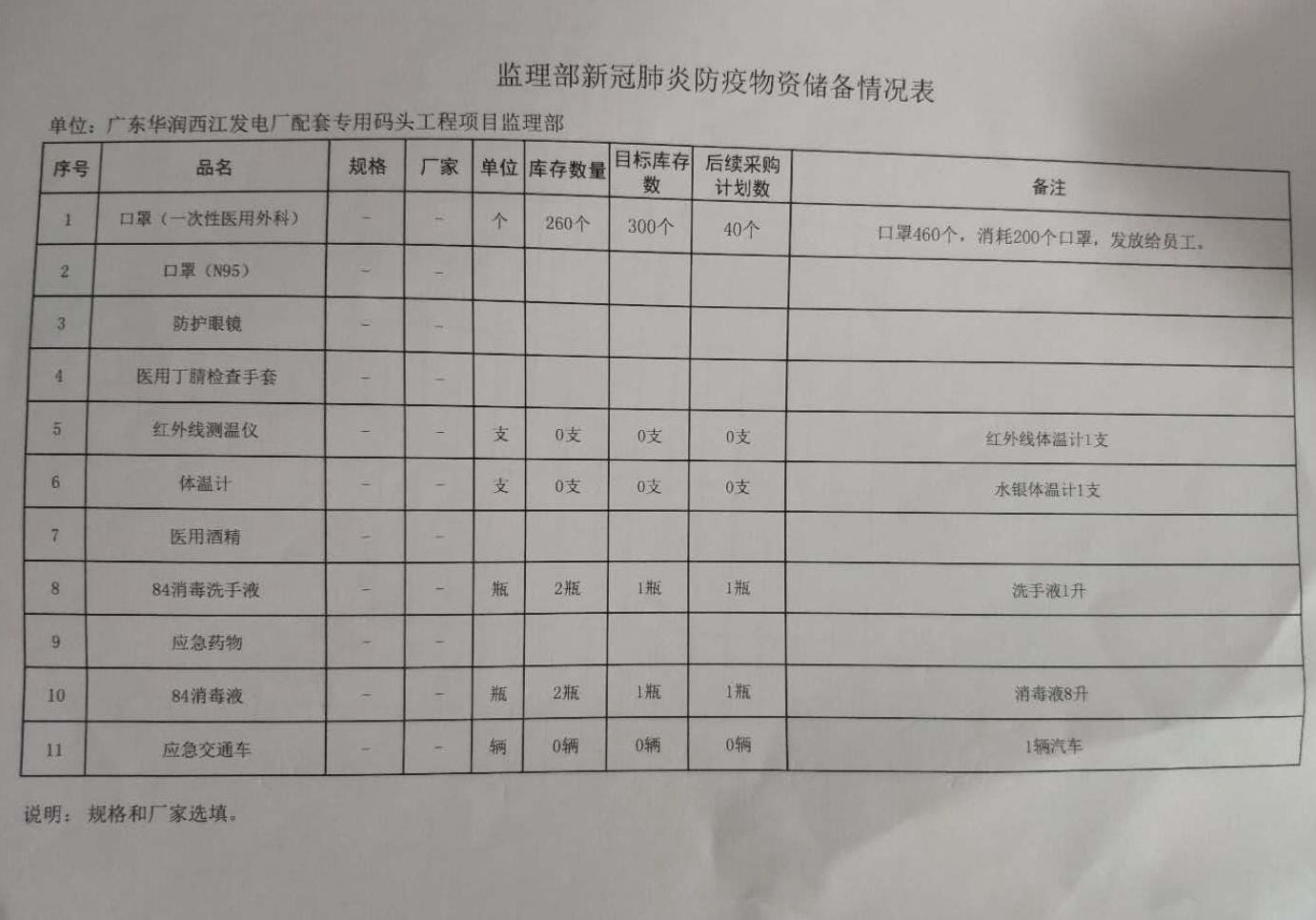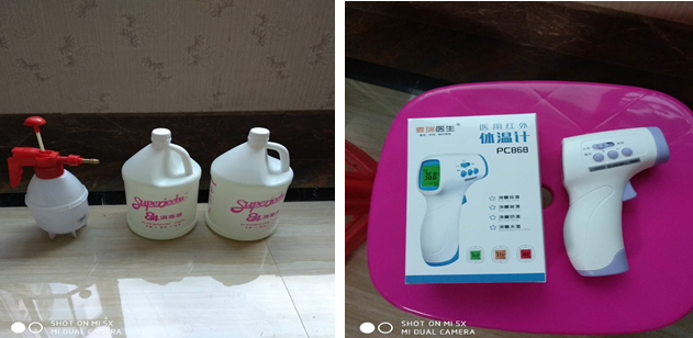 口罩、體溫計、消毒液、酒精等,并且設有專人負責物資統計和使用登記,能夠及時補充有關物資,目前項目監理部已采購到位460個口罩、1支紅外測溫槍、1支水銀體溫計、2升75%酒精、10升消毒液。