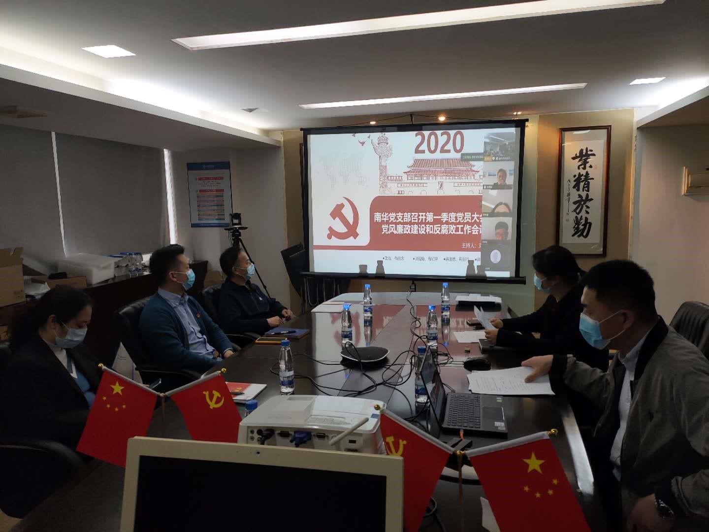 南華黨支部于2020年4月24日下午在公司會議室召開第一季度黨員大會視頻會議。本次會議主題為回頭看關于2019年“不忘初心 牢記使命”專題組織生活會問題整改工作暨學習關于2020年黨風廉政建設和反腐敗工作會議精神。