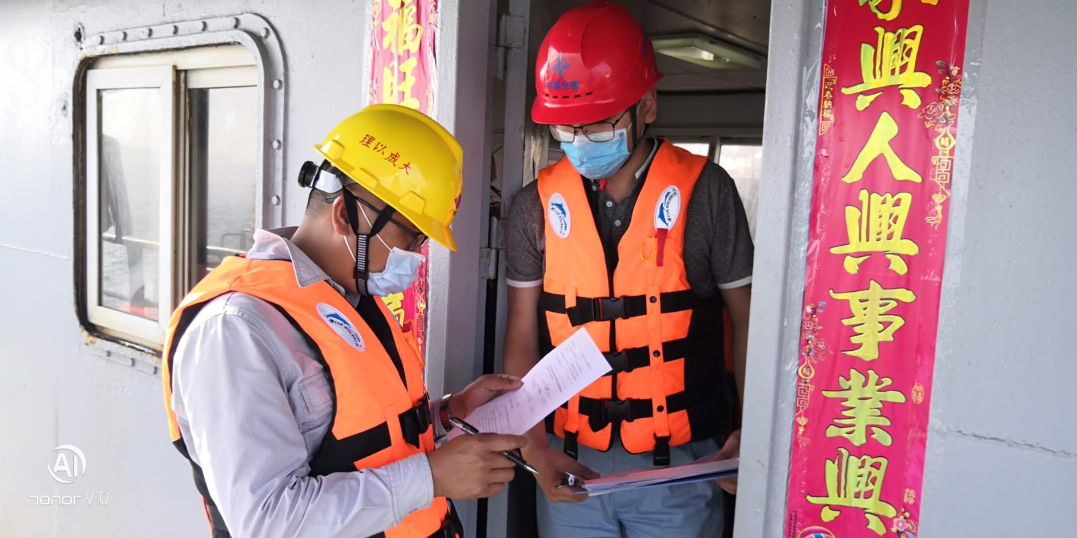 二、臨近中午,現場還須進行海上基槽炸礁爆破作業,業主單位領導們也專程來現場觀看,并向一線人員表達感謝及問候。