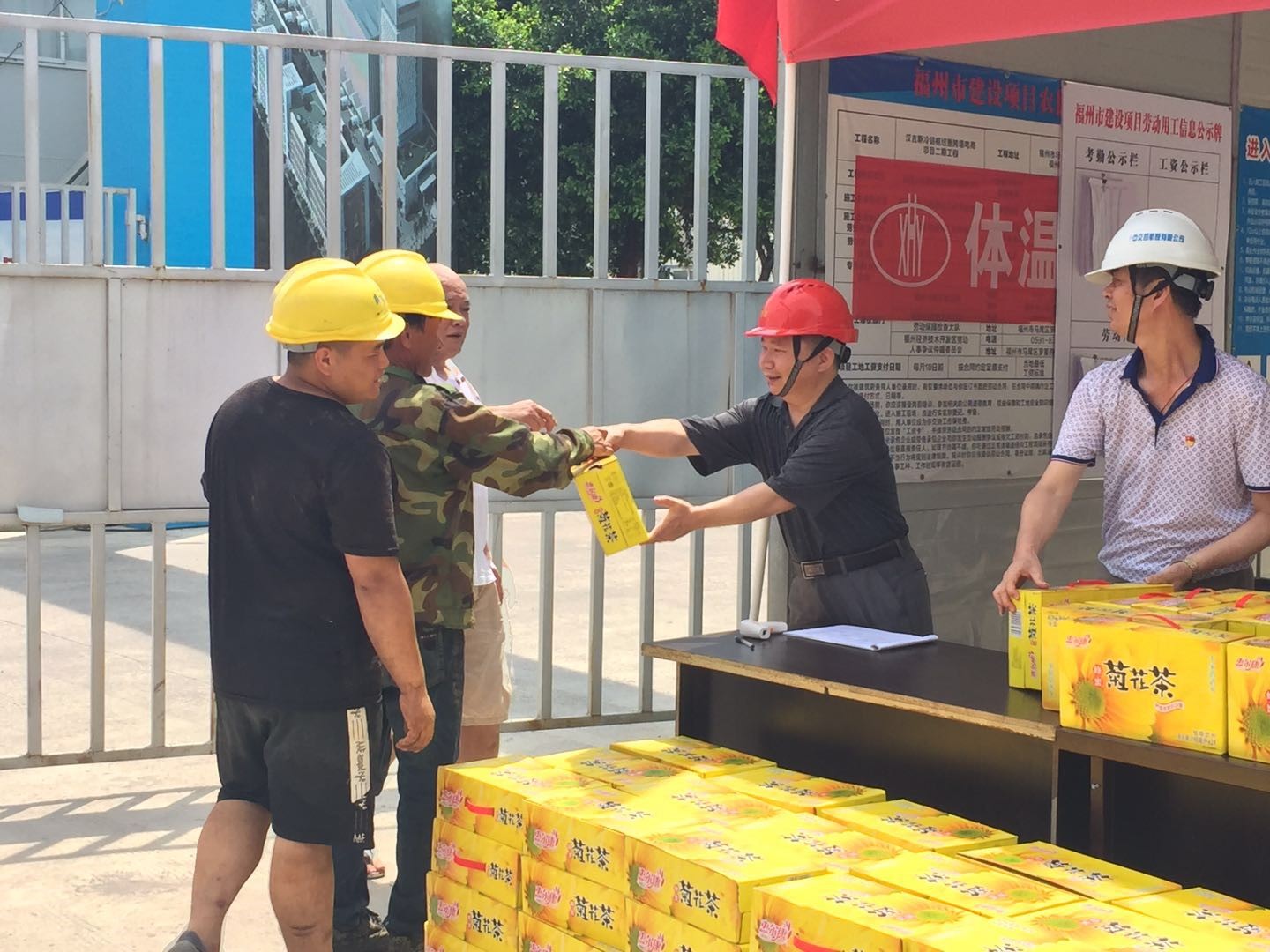 活動(dòng)現(xiàn)場(chǎng),項(xiàng)目管理部領(lǐng)導(dǎo)將一份份慰問品發(fā)放到一線員工手中,為高溫下的員工送去了關(guān)懷與清涼。