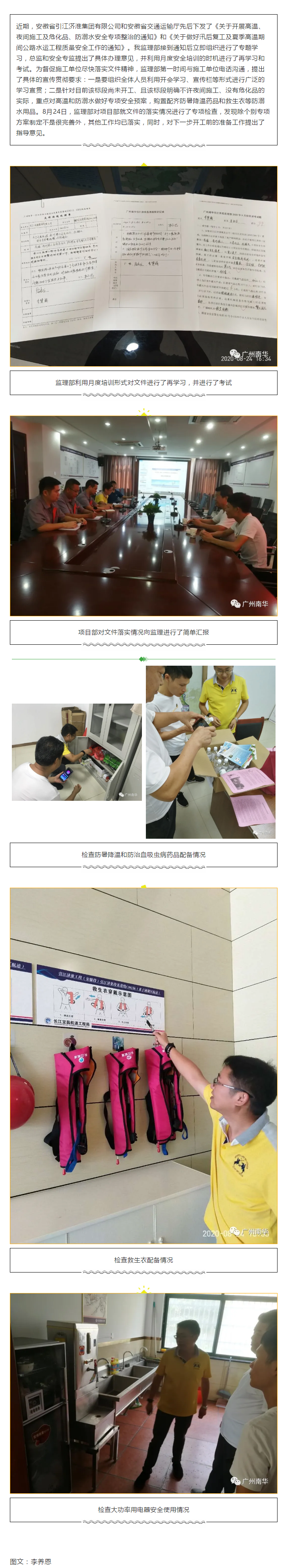 引江濟(jì)淮監(jiān)理部認(rèn)真督查開展高溫、夜間施工及危化品、防溺水安全專項(xiàng)整治
