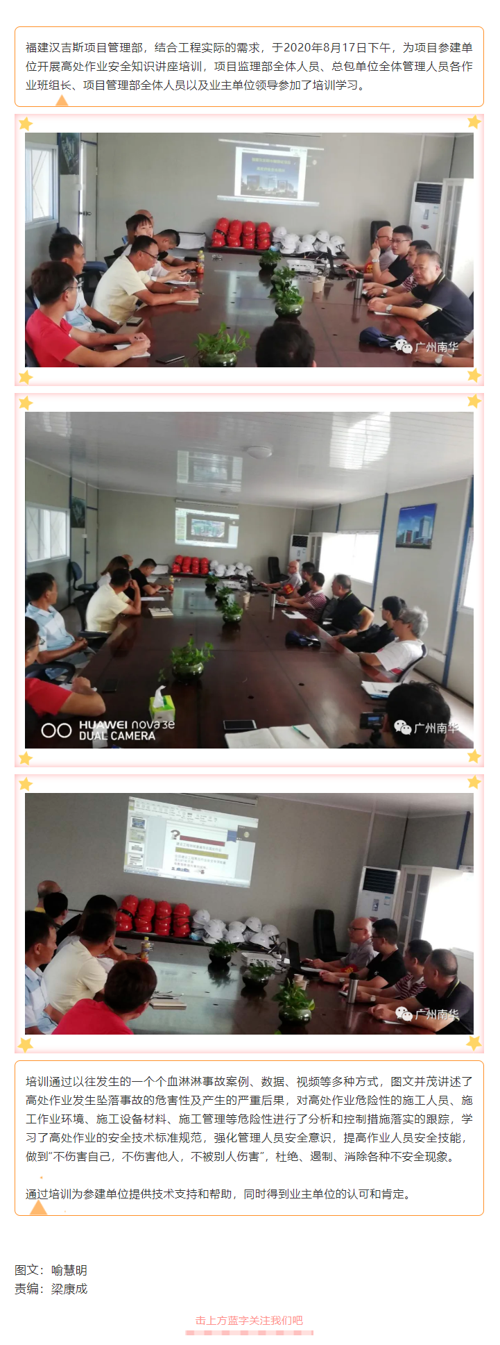 福建漢吉斯項目管理部開展高處作業安全知識培訓