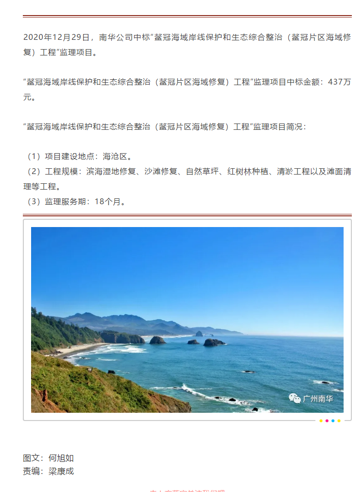 喜訊--南華公司中標(biāo)“鰲冠海域岸線保護(hù)和生態(tài)綜合整治(鰲冠片區(qū)海域修復(fù))工程”監(jiān)理項(xiàng)目