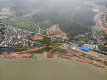 陸域形成區(qū)域目前地面高程在+8.2m~+16.82m之間,所以屆時陸域水將無法正常排入江,而且江水倒灌將被淹沒當(dāng)前陸域。