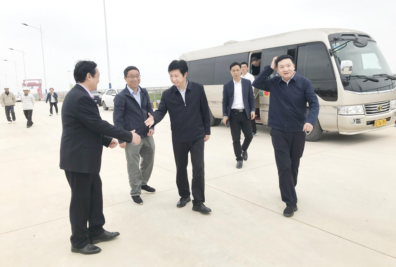2023年05月11日上午,上饒市市委副書記、市長邱向軍等相關領導蒞臨本工程實地考察調研工作,在鄱陽縣縣委副書記、縣長王宗華、鄱發集團領導的陪同下參觀了碼頭工程現場。